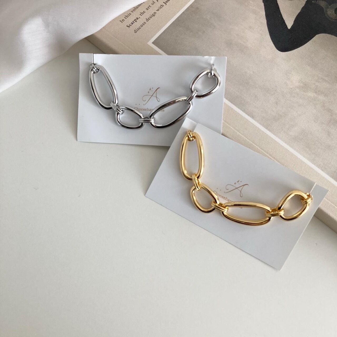 2種類のサイズの違う輪っかを交互にし、カーブ感や太さのサイズも、何度も話し合いを重ね製作した、オリジナルチェーンブレスレットとなります。