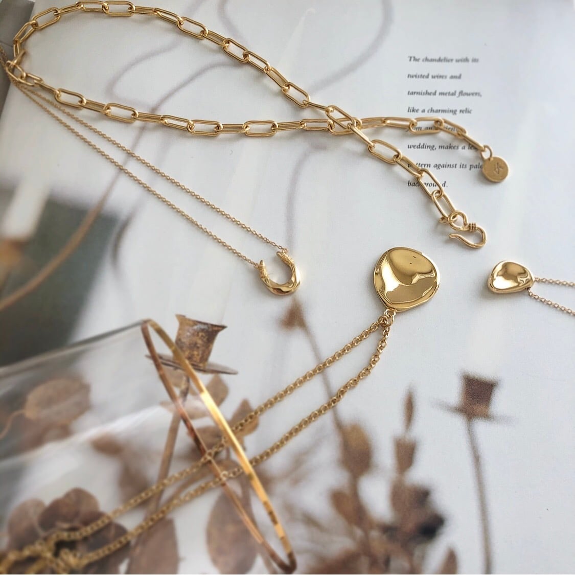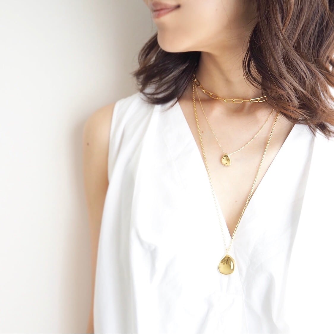 チェーンの幅、太さ、丸みも色んなバージョンで試作を重ね、重ねつけしても、1本で使用しても合わせやすく一番ぴったりくるサイズにこだわりぬいたアイテムです。