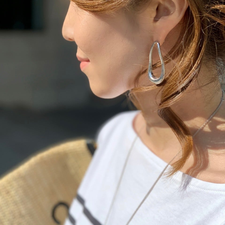サイドから見るとゆるやかなラインがおしゃれな ティアーズフープピアスです。